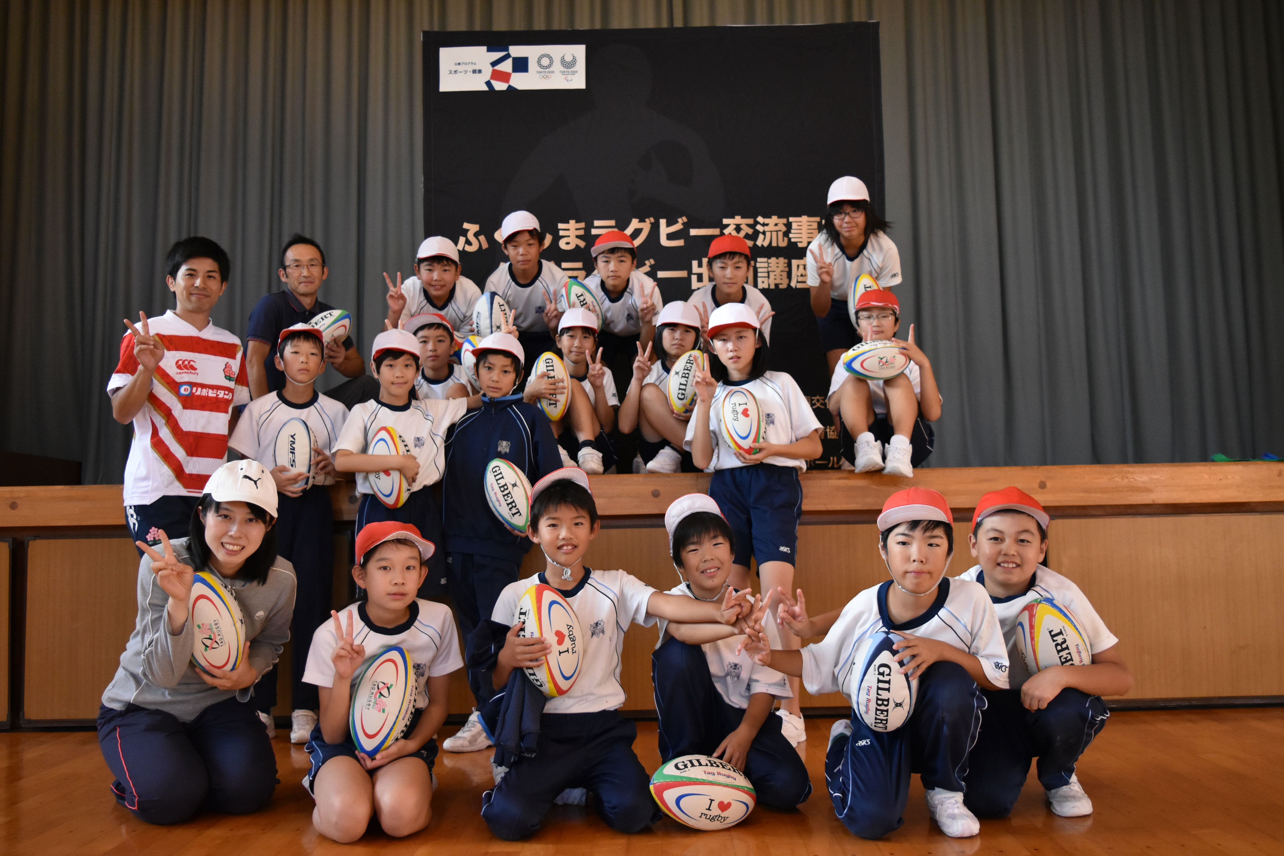 タグラグビー出前講座(喜多方市立高郷小学校) 令和元年10月9日(水) JICA青年海外協力隊帰国隊員 比嘉 昴 氏 が来校し、タグラグビー出前講座を実施しました。 【ウォーミングアップ】 【タグ取りの練習】 【簡易ゲームの様子】 【3・4年生の児童たち】 【5・6年生の児童たち】
