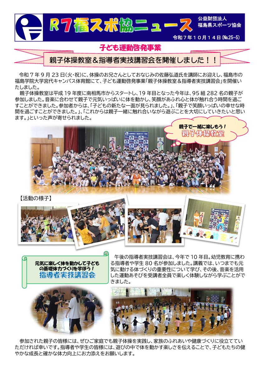 R7福スポ協ニュース(No.25-5)を掲載します。ぜひご覧ください。