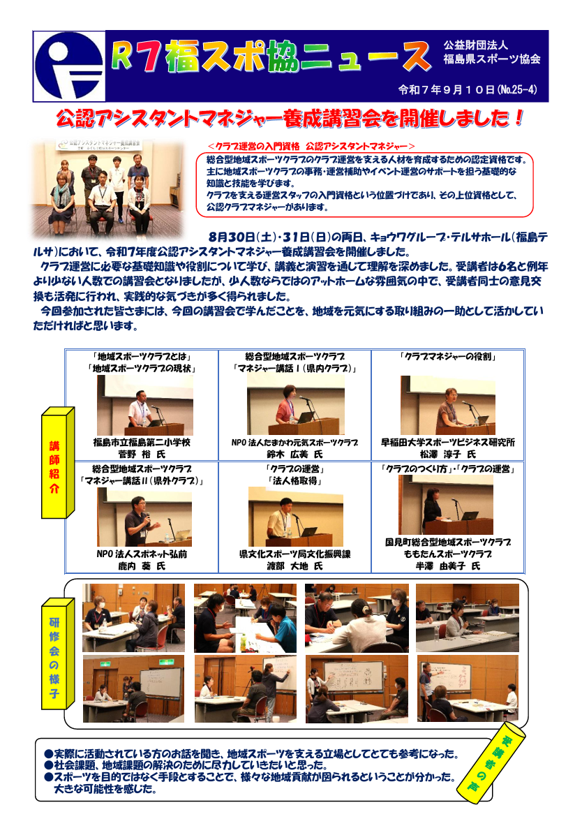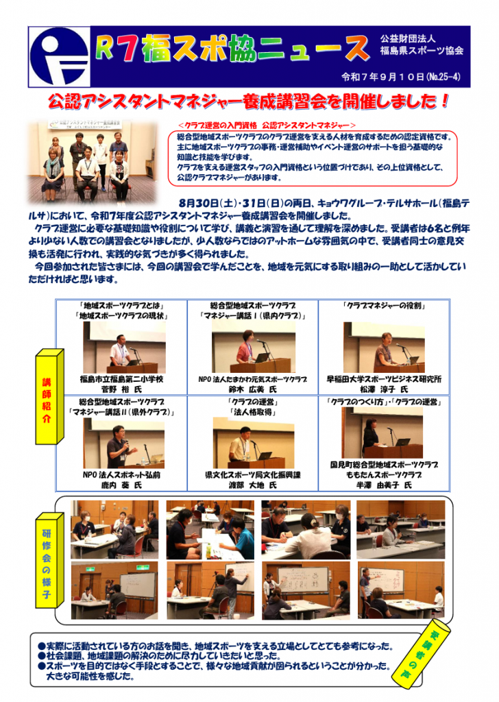 R7福スポ協ニュース(No.25-4)を掲載します。ぜひご覧ください。