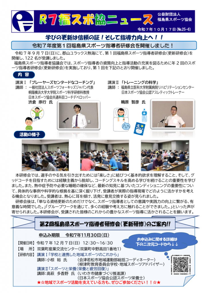 R7福スポ協ニュース(No.25-6)を掲載します。ぜひご覧ください。